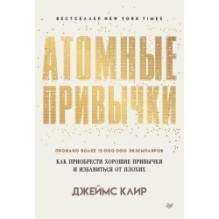 Бестселлер New York Times Бестселлер USA Today Лучшая деловая книга 2018 года по версии Fast Company Лучшая книга по самопомощи 2018 года по версии Business Insider Может ли одна монетка сделать человека богатым? Конечно, нет, скажете вы. Но если добавить еще одну? И еще? И еще? В какой-то момент количество перейдет в качество. А теперь представьте, что одно крошечное изменение кардинально меняет всю жизнь. Звучит фантастически! Но, как и в случае с монетками, срабатывает эффект сложного процента. И вот уже маленькое, но регулярное действие привело к большим результатам. Атомные привычки — маленькие изменения, в которых скрыта огромная мощь! Вы давно пытаетесь измениться, но не получается. Не корите себя! Виноваты не вы, а система. Джеймс Клир развенчивает мифы о привычках, мотивации и силе воли. Опираясь на научные данные, результаты исследований, личный опыт и опыт успешных людей, он просто и понятно объясняет, как сделать хорошие привычки неизбежными, а вредные — невозможными. Без вариантов!