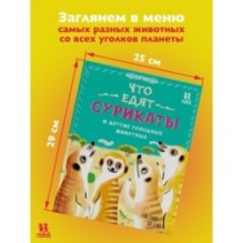 Всем животным необходимо чтото есть, ведь еда — это источник энергии. Она нужна, чтобы двигаться, расти, быть здоровыми, обзаводится детёнышами и воспитывать их. Одни животные питаются травой, листьями, плодами, семенами, нектаром или даже корой. Другие — мясом. А третьи вообще лопают всё, что попадётся! Есть привереды, которые могут есть лишь чтото одно, и те, кто питается совсем уж гадостью. В этой книге мы расскажем о том, что едят животные со всех уголков планеты. И огромные голубые киты, которые заглатывают тонны морских рачков, и ловкие сурикаты, закусывающие скорпионами, да так, чтобы те их не ужалили. Мы сходим на обед к самым разным животным — многомного чудес природы ждёт нас. Что же там в меню?
