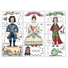 Короли, ученые, государственные мужи и полководцы - 14 важнейших персонажей первой четверти XVIII века в одной колоде! Веселая и увлекательная историческая игра "Эпоха Петра I с головы до ног!" познакомит с героями того времени и поможет развить логику и воображение. Сможешь ли ты найти туловище Ньютона? А правильно подобрать ноги к голове Людовика XIV? Станешь ли ты складывать как можно больше самых причудливых, никогда не существовавших людей, или искать правильные элементы и зарабатывать большое очков? Твоя игра - твоя стратегия!