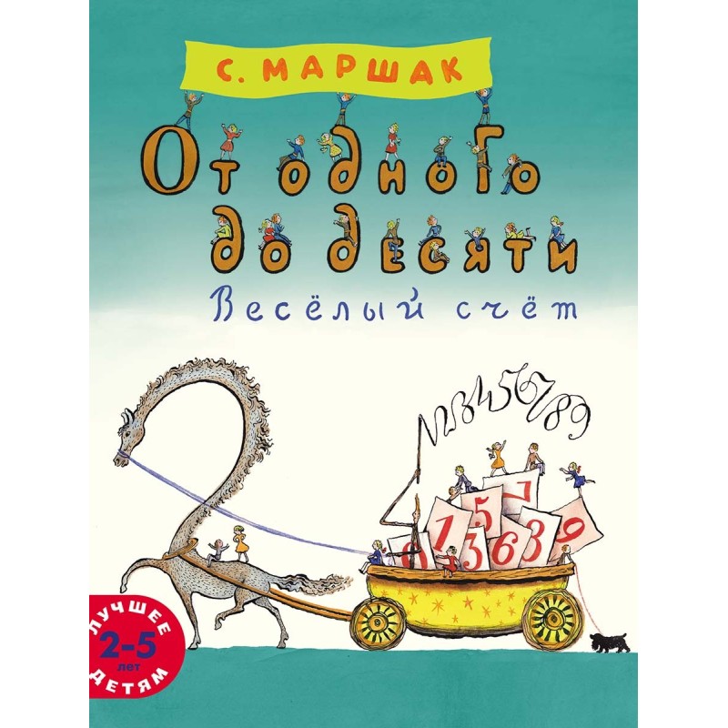 Стихотворение Самуила Маршака «От одного до десяти. Весёлый счёт» – одно из лучших и невероятно популярных детских произведений для обучения счёту. Слушая или самостоятельно читая моментально запоминающиеся строчки, ребёнок без усилий и с удовольствием запоминает цифры от 1 до 10. Но это не единственное достоинство книги. Простые и доступные стихи учат не только счету, но и делам житейским: «Потому что кошки не едят из ложки»; «А не ляжете в кровать – носом будете клевать»; «Семь ночей и дней в неделе»; «Красный свет – проезда нет, жёлтый – будь готов к пути, а зеленый свет – кати». Замечательный текст органично дополнен рисунками Владимира Конашевича. Он наделяет цифры живыми чертами и вводит в книгу несуществующих в тексте забавных человечков. Они везут цифры в тележке, удерживают единиц от драки, грустят, когда они оказываются зачёркнутыми, с радостью подталкивают цифры к нолям, пьют чай за кукольным столиком, разъезжают на игрушечном самосвале, кормят кошек молоком и производят множество других весёлых и полезных действий. Книга рекомендуется для чтения взрослыми детям дошкольного возраста, совместного рассматривания превосходных картинок и освоения малышами начального счёта. Книга хороша и для первого самостоятельного чтения.