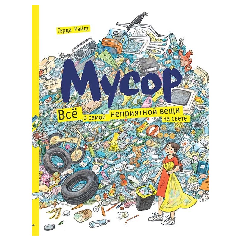 Мусор — штука неприятная, и обычно нам хочется поскорее от него избавиться. Выбросив свой ежедневный домашний мусор в ближайший контейнер во дворе или спустив его в мусоропровод, мы навсегда забываем о его существовании. Однако, пропав из нашего поля зрения, мусор, увы, не исчезает бесследно… Он скапливается гигантскими кучами на мусорных свалках вблизи больших городов – и таких свалок становится всё больше по всему миру. Он валяется по берегам морей и океанов, куда его выносит прибоем. Он лежит в хранилищах под землёй, рискуя заразить почву и грунтовые воды ядовитыми веществами. В последние годы проблема мусора стала настолько острой во всём мире, что уже невозможно закрывать на неё глаза. И если не заняться её решением сейчас, то очень скоро наша планета может превратиться в большую помойку, на которой попросту не останется места для нормальной жизни… Так почему же и с каких пор мы стали производить такое невероятное количество мусора? И что может сделать каждый из нас уже сегодня, чтобы изменить ситуацию к лучшему? Обо всём этом рассказывает книга немецкой художницы Герды Райдт «Мусор. Всё о самой неприятной вещи на свете». Суть проблемы здесь излагается доходчиво, последовательно и логично. Автор не тратит лишних слов и не злоупотребляет сложными понятиями и терминами, предпочитая дополнять свой рассказ убедительными иллюстрациями, которые заставляют читателя всерьёз проникнуться «мусорной проблемой», осознать её важность и неотвратимость для каждого из нас. Книга поможет воспитать в сегодняшних детях новые полезные привычки и вырастить их по-настоящему ответственными потребителями, которые станут критически относиться к рекламе, будут покупать только то, что им действительно нужно, научатся внимательно читать знаки на упаковках, откажутся от использования пластиковых пакетов, посуды и других одноразовых предметов. Кстати, и взрослым ещё не поздно воспитать в себе все эти и многие другие привычки, о которых рассказывает книга, ведь, оказывается, они полезны не только для экологии, но и для семейного бюджета!