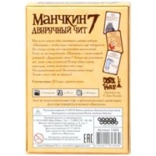 Седьмая часть? О, нет... Это дополнение продолжает последнее веяние шестой части - переход к эпичности! Таскайте по два перекачанных оружия одновременно, миксуйте сразу Три класса персонажа, доберитесь при желании до двадцатого уровня и попрыгайте на могилках самых страшных монстров! Новые карты учитывают все предыдущие версии игры, поэтому ни разрушительность Манчкин-Фу, ни космическая запредельность Звездного Манчкина не останутся в стороне от происходящего. Признайтесь - вам действительно нравится комбинировать различные наборы «Манчкина». Чем сумасшедшее идея, тем она лучше, не так ли?! Играть в Звёздного Ктулху Пиратского Зомби-Манчкина, конечно, безумно весело, но иногда это немного замедляло приключение... Но теперь, с этим дополнением проблема решена! И решена она в «Манчкин» стиле, поэтому в коробке с игрой вы найдёте множество невероятно крутых по силе карт! Зачем быть Супер-Манчкином, если теперь вы можете стать Ультра-Манчкином? Если быть полукровкой уже недостаточно выгодно – так станьте 13-кровкой! А если вам не хватает обычного Чита, то на помощь придёт Двуручный! Снова смешивать, а сколько в граммах? Не беспокойтесь. Обновленные правила и рекомендации по миксованию предыдущих выпусков позволят Вам создать на столе сбалансированный коктейль по вкусу. Лонгдринк "Бластеры-с-Щупальцами", неожиданно быстрый "Зомби-Фу" или ультимативный с тропическим топингом "Пиратский Апокалипсис" - все, что угодно! Даже старый-добрый первый Манчкин может удивить неожиданной новизной. Маленький совет от Стива Джексона: если колоды сокровищ и дверей слишком высоки и периодически падают от взрывов хохота, то просто разделите их пополам... Готовы к мега-эпичной алхимии манчкинизма? Тогда вперед! Получите невероятное удовольствие от «Манчкин 7. Двуручный Чит» - дополнив, ускорив и прокачав свою любимую игру в любых сочетаниях! Данное дополнение, в отличие от других дополнений «Манчкина», именно расширяет игру и неиграбельно само по себе - лучше всего его будет замешивать в любые две или более колоды «Манчкина». Немного об оригинальной игре Игра «Манчкин» – локализация настольной карточной игры Munchkin. На русском языке игра, как ни старайся, приобретает новое звучание, но остаётся по-прежнему азартной, динамичной и злорадной. Ролевое зубоскальство по простым, но местами намеренно туманным правилам подвергает насмешкам благородных эльфов, мудрых магов, отважных воинов и мохноногих хафлингов. Клирики бьются с андедами, воры подрезают своих соперников в разгар боя, гигантские Кальмадзиллы и мерзкие Лицесосы стремятся отравить или отнять геройские жизни ваших манчкинов, но так, на расслабоне, без долгих речей и многочисленных бросков разногранных костей, принятых в D&D, GURPS и прочих равенлофтах. Так что же такое «Манчкин»? Итак, настольная игра "Манчкин" - это ролевая игра по форме, пародия по содержанию. Манчкины игроков ходят по подземелью, вытаскивают на свет божий тамошних чудовищных обитателей и либо раскаиваются в этом, либо получают за победу новые уровни и сокровища. Исход каждого подобного приключения (боя, короче) зависит от того, кто с чем на бой вышел. У игрока это уровень и бонусы/штрафы от шмоток, класса, расы и проклятий. У монстра это уровень плюс карты-усилители и разовые шмотки. Откуда шмотки у монстра? В вашем бою могут приня